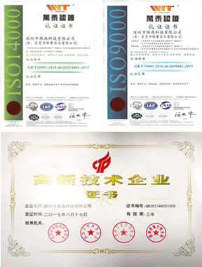 公司在成立初期就导入了ISO9001质量管理体系,并在2006年首次通过了ISO9001认证,2010年完成了ISO14000认证。